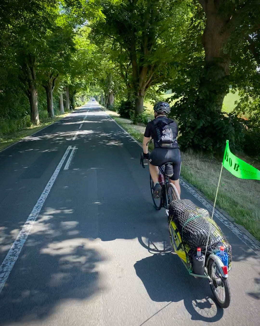 Trotz der Strapazen der letzten zwei Tage sind wir gut gelaunt und erstaunlicherweise recht fit. Es fühlt sich wie ein Siegeszug an, als wir über den Rügendamm rollen. Selbst ein kleiner defekt am Hänger kann uns die gute Laune nun nicht mehr nehmen. Ein loser Splint wird kurzerhand mit Panzertape fixiert und weiter geht es. Beim erstbesten Bäcker gönnen wir uns ein gutes Stück Blechkuchen und ein Bier. Warum auch nicht?