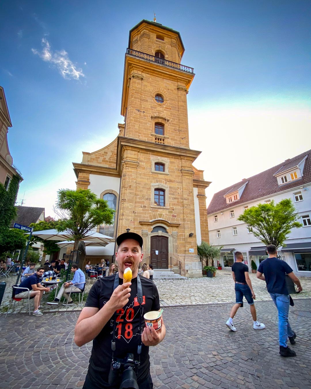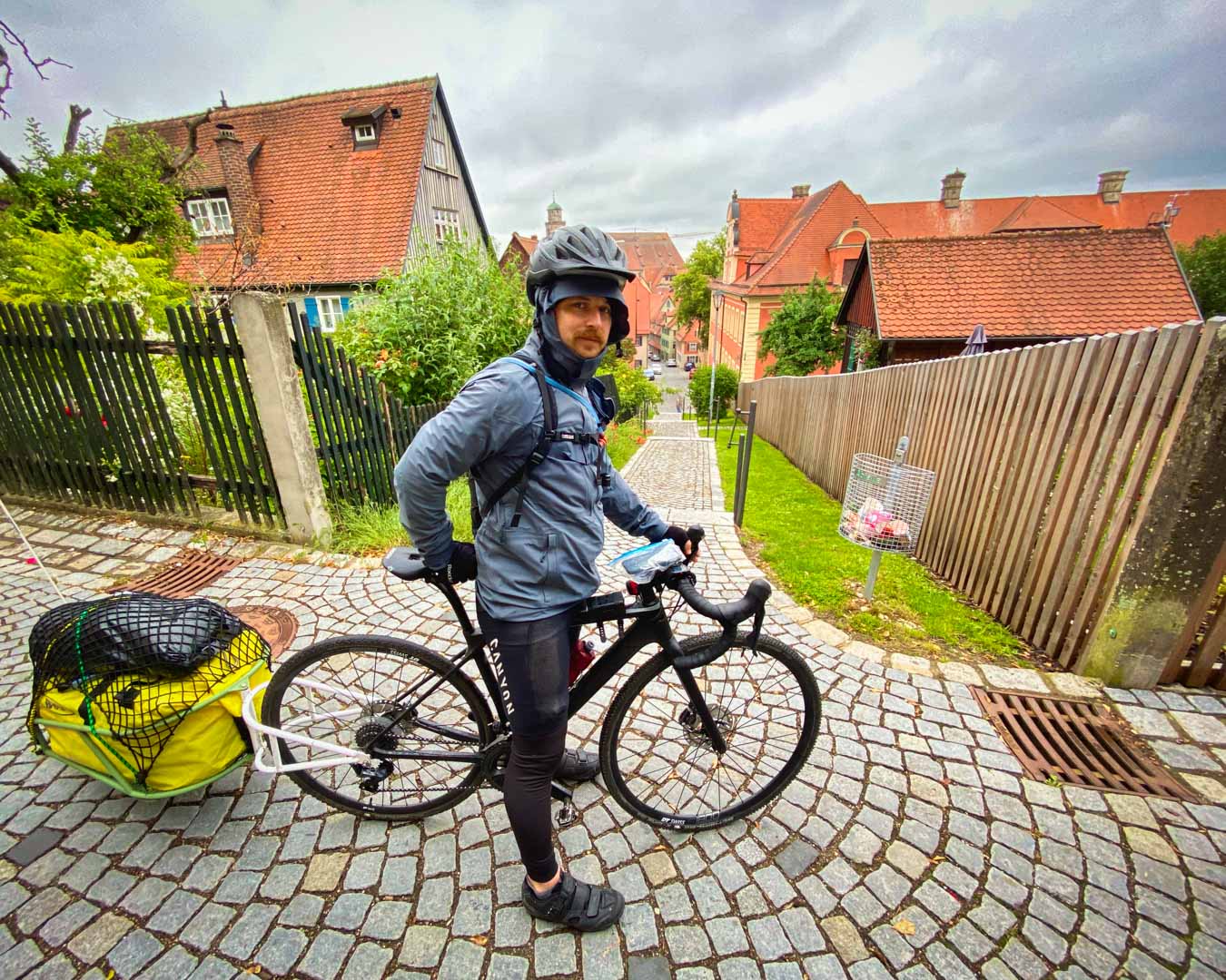 Auf unserem Weg passierten wir die Grenze zu Bayern und kamen durch das beschauliche Städtchen Dinkelsbühl. Dessen Altstadt zählt zu einer der besterhaltenen und schönsten Deutschlands. Was ich durchaus bestätigen kann. Allerdings haben solche Altstädte oft eins gemeinsam — Kopfsteinpflaster. Das mag im Gesamtbild toll aussehen. Versucht man aber mit schmalen Reifen und schwerem Anhänger voran zu kommen, ist es eher eine Qual.