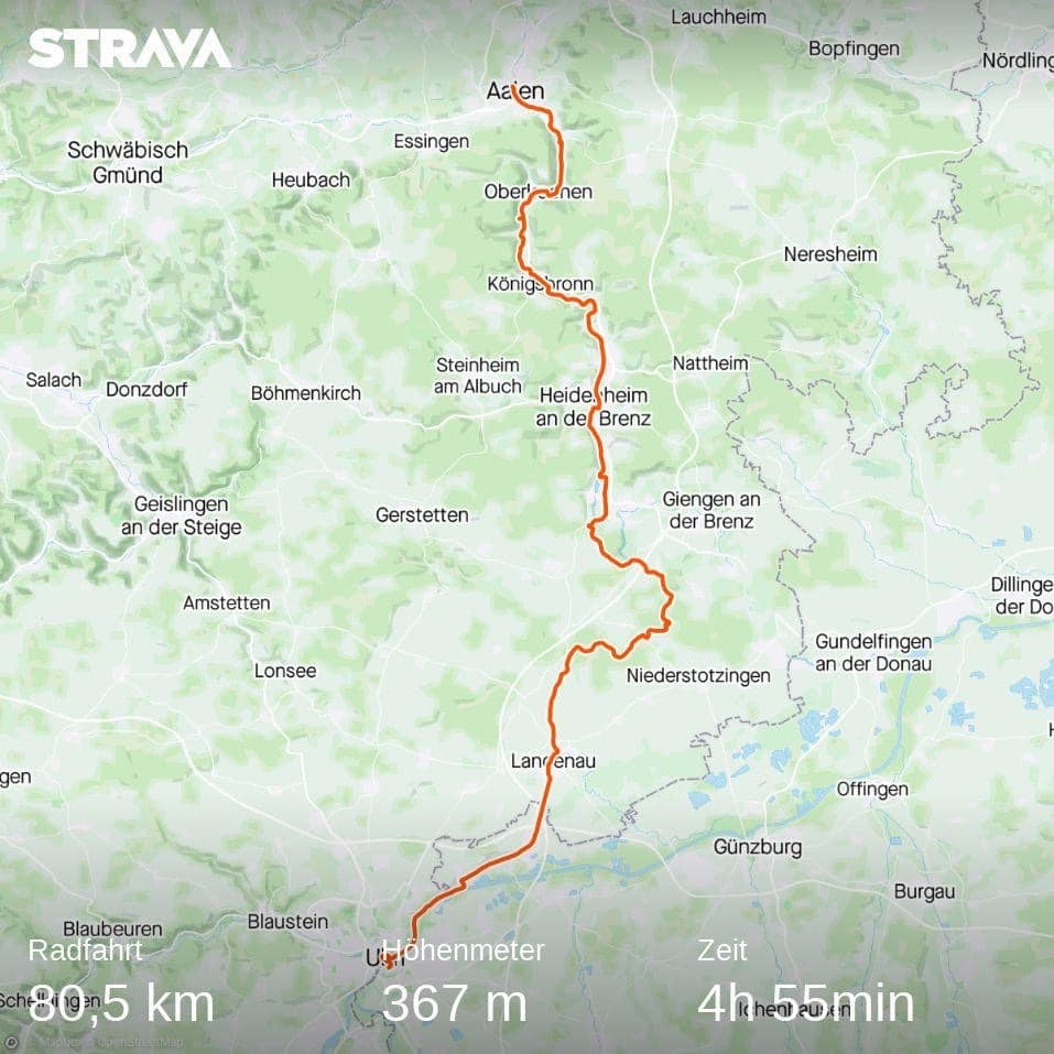 Der zweite Teil der Tour führte uns durchs Kochertal. Das an sich bestimmt auch sehr schön sein könnte. Allerdings ist es gerade rund um Oberkochen, dem Hauptstandort von Carl Zeiss, sehr dicht besiedelt. So schließt sich fast ein Ort nahtlos an den nächsten an und man fährt gefühlt von Industriegebiet zu Industriegebiet. Nach einem Abstecher an den Ursprung der Kocher, erreichten wir Aalen schließlich am frühen Nachmittag.