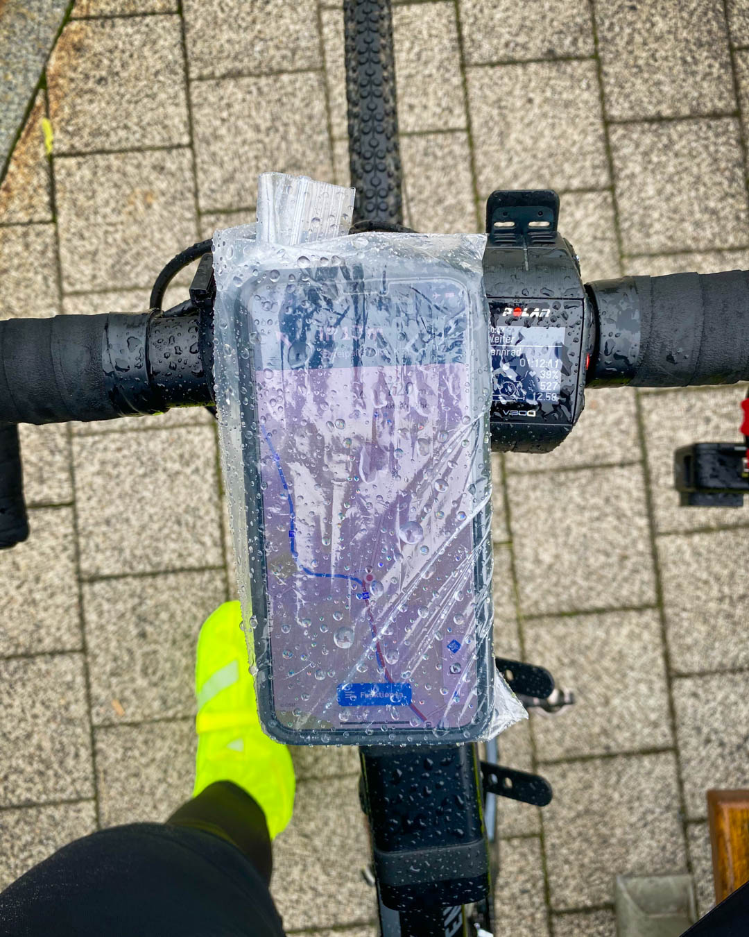 Auf der Hälfte des Anstiegs mussten wir dann aber erstmal eine Zwangspause einlegen. Robert hatte einen Platten. Während er den Reifen flickte, merkte ich, wie kalt es eigentlich war, sobald man nicht mehr radelte. Das Thermometer zeigte keine 15 Grad.