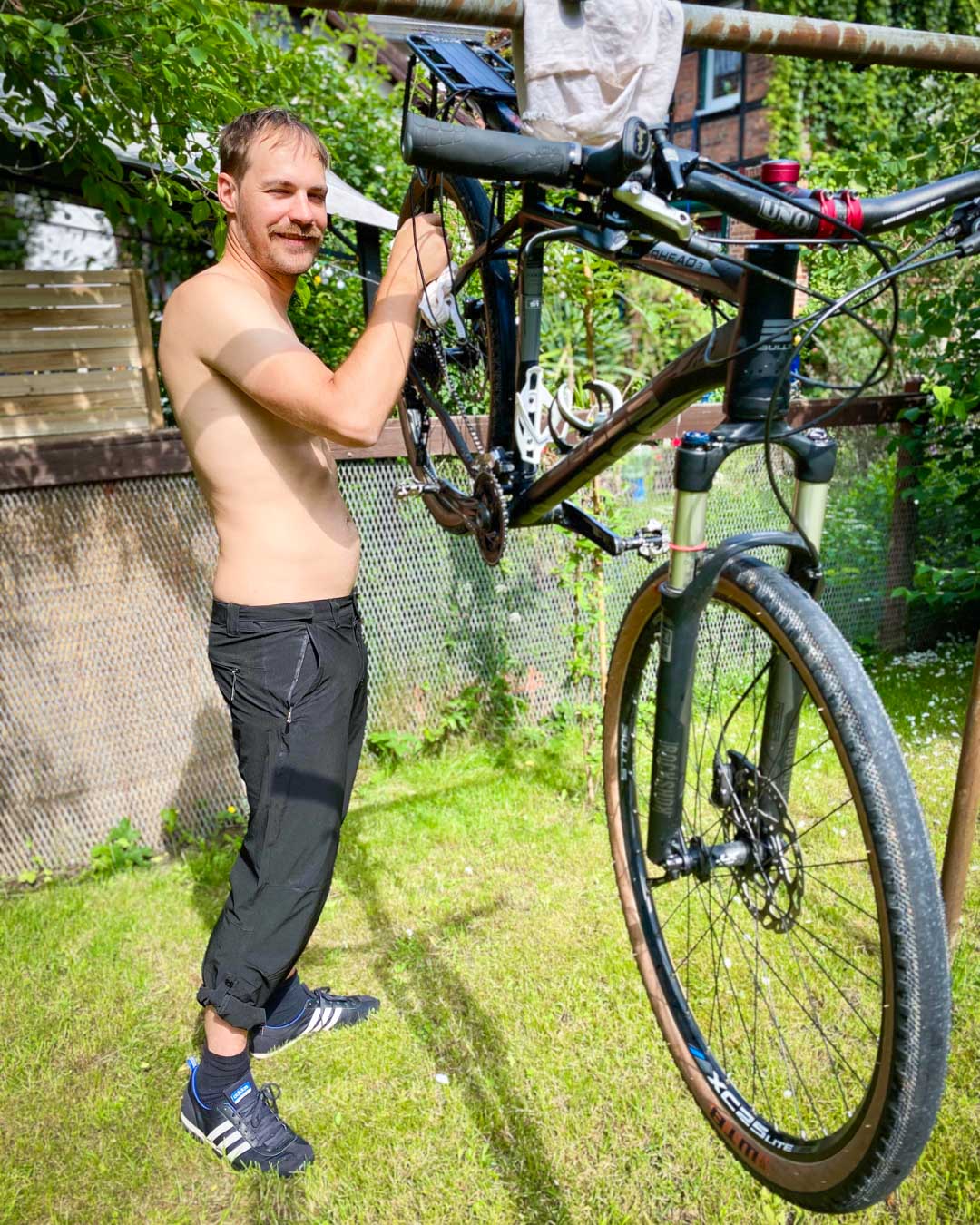 Am Fuße des Thüringer Waldes legten wir einen Pausentag ein. Den Vormittag verbrachten wir damit, unsere Räder gründlich zu reinigen und eine Bestandsaufnahme zu machen.